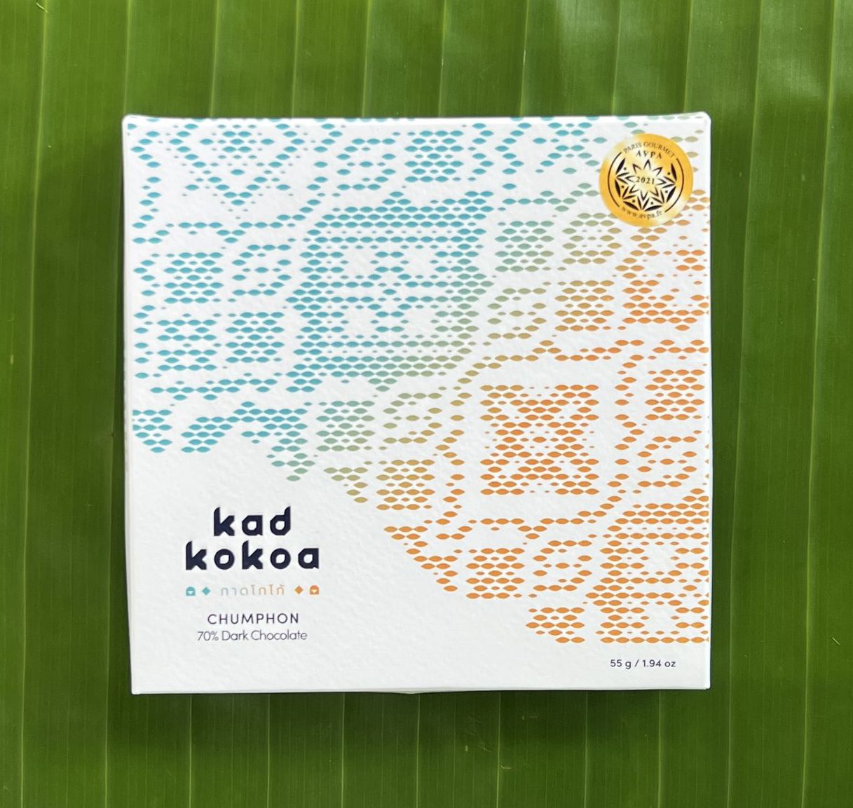 Kad Kokoa sources cacao beans that are of single provincial origins. It supports the collective and farmers for bean grading, fermenting and drying to ensure it brings out the complex flavors and aroma of Thai chocolate. Its taste and quality are guaranteed by the International Chocolate Award 2018 and 2019, and by AVPA Paris awards 2020.