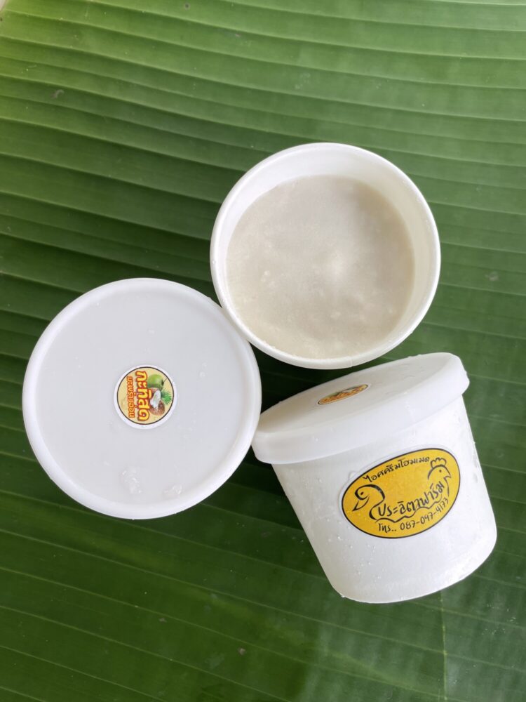 - ไอศกรีมโฮมเมด ที่มีส่วนผสมแค่มะพร้าวอ่อนและกะทิสด