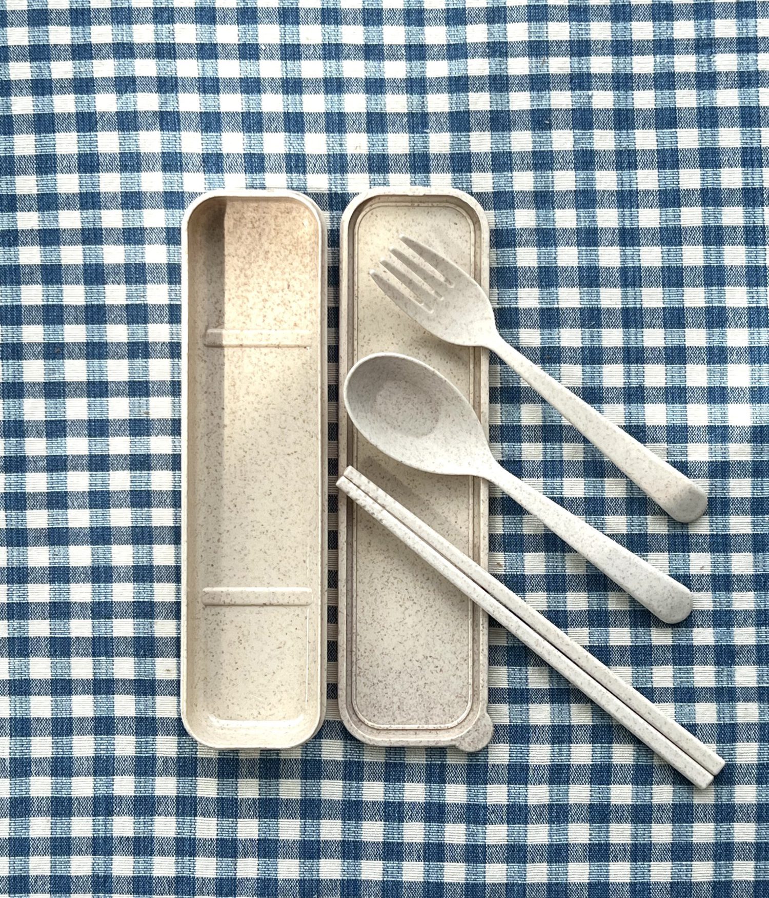 กล่องช้อนส้อมและตะเกียบ แบบพกพา ผลิตจากกากธัญพืชผสมพลาสติก